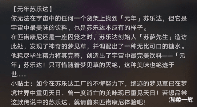 当时这一描述被当作疯话忽略,直到3.8版本预告背景中出现同款粘液,而这种粘液附近还生长着大片紫色植株,这难不成就是匹诺康尼国民饮料“苏乐达”的最初的原料“梦见草”?