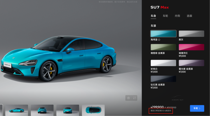 这是小米汽车官方首次以优惠价格对外售车。与此同时时代周报记者在小米汽车官网发现,小米SU7系列车型交付周期已从此前近半年时间大幅缩短到最快3-6周;小米YU7系列车型交付周期也缩短2-4周不等,已锁单用户交付周期最多缩短7周。